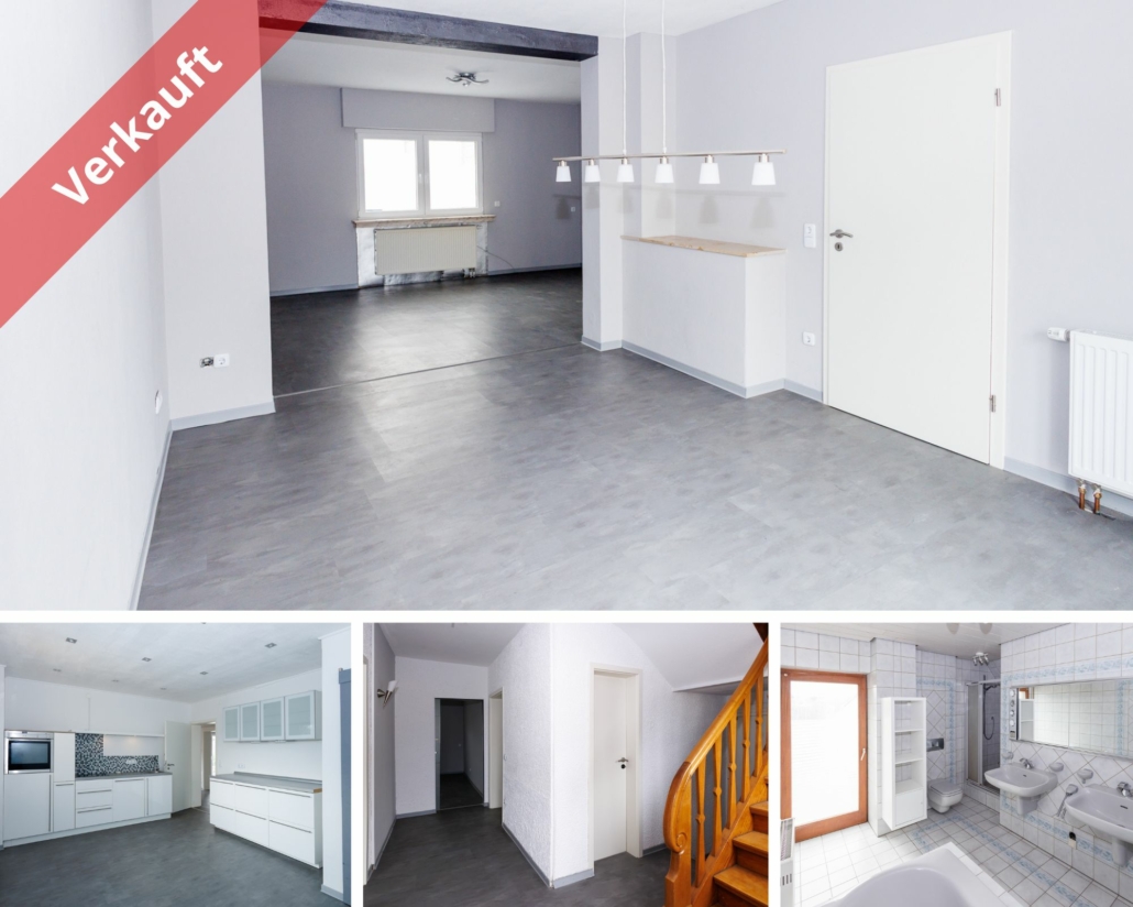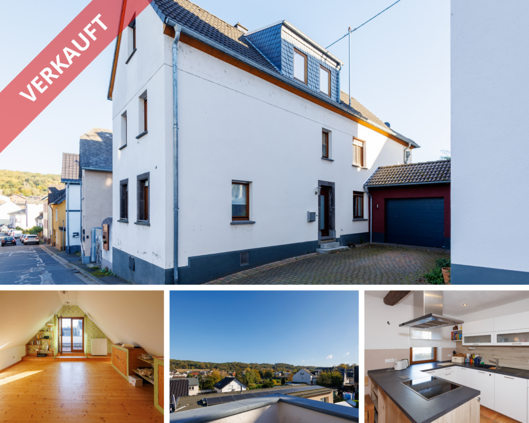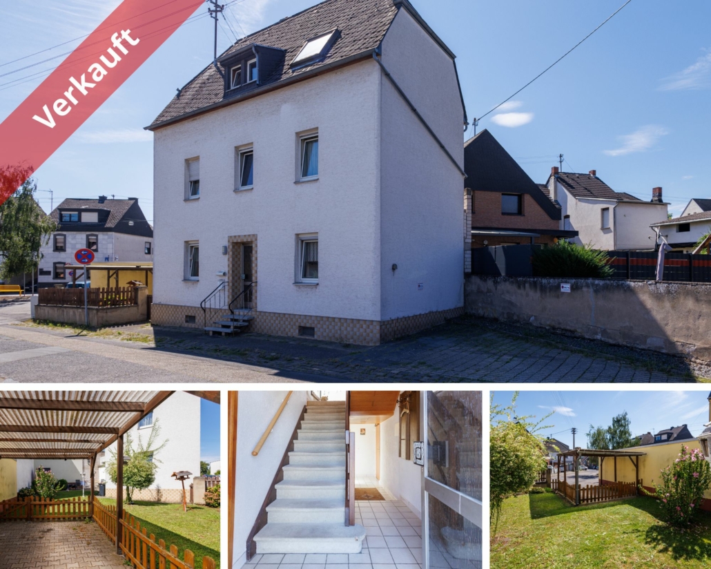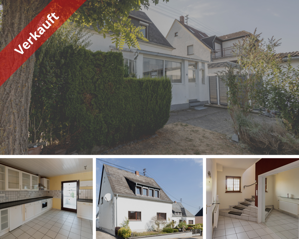 verschiedene Fotos vom Reihenmittelhaus in Andernach nach dem Verkauf markiert mit einem Verkauftbanner in der linken oberen Ecke - Martina Wagner Immobilien