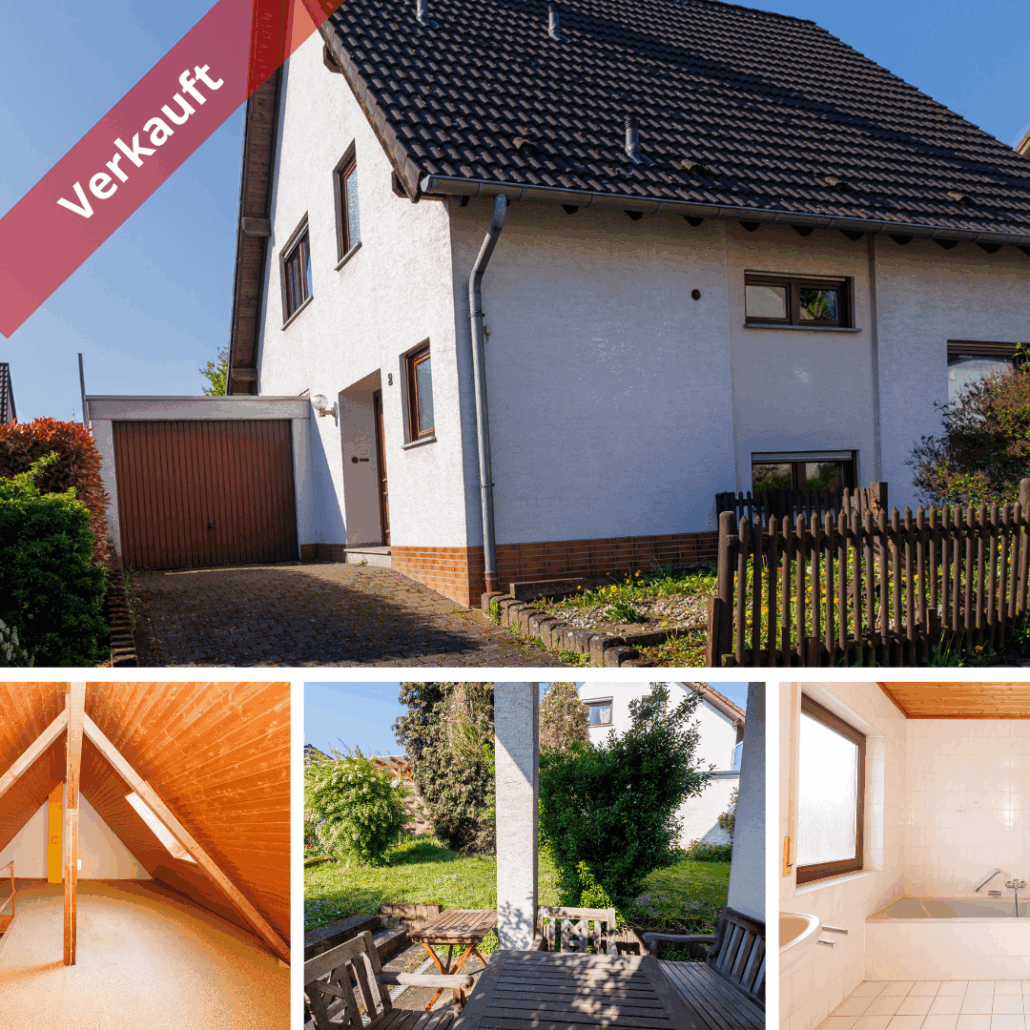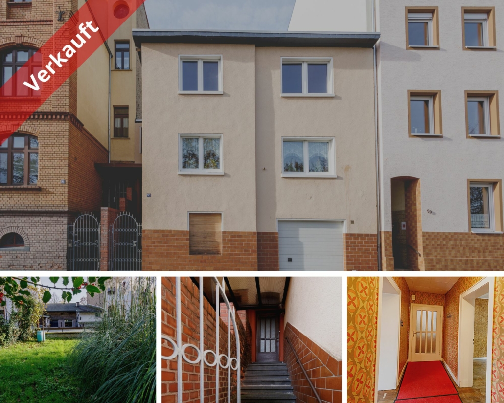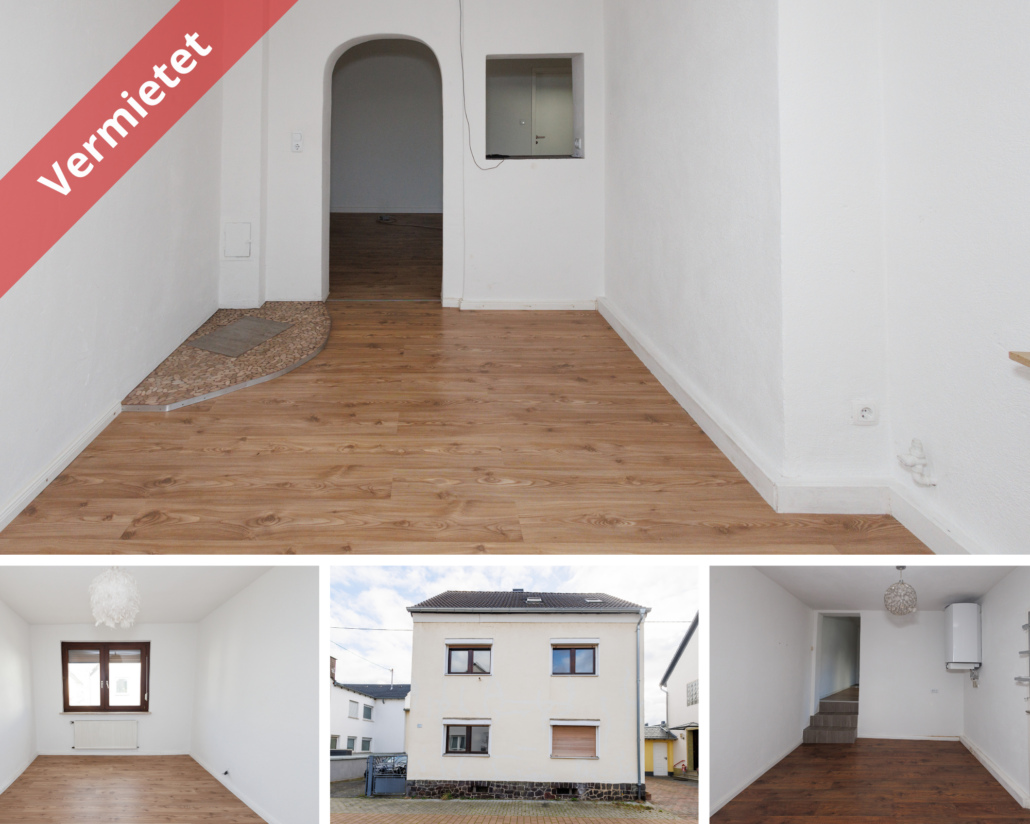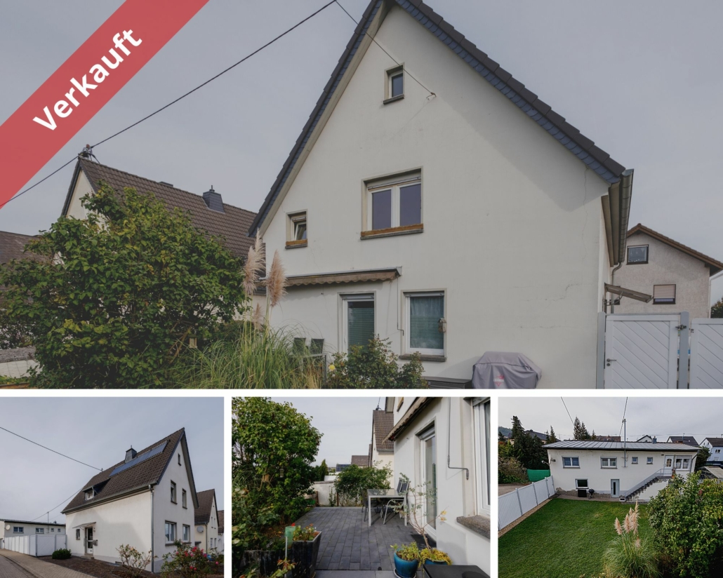 verschiedene Fotos vom Reihenmittelhaus in Andernach nach dem Verkauf markiert mit einem Verkauftbanner in der linken oberen Ecke - Martina Wagner Immobilien