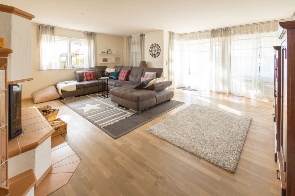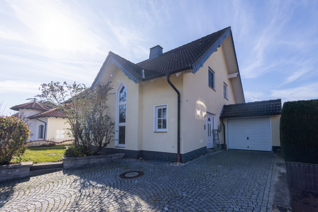 Das moderne Einfamilienhaus aus dem Baujahr 1999 besticht durch seinen sehr durchdachten und dennoch flexiblen Grundriss. Auf ca. 151 m² Wohnfläche, die durch etwa 83 m² Nutzfläche ergänzt werden, wurde neben einer modernen Heizungslösung Wert auf die Verwendung hochwertiger und langlebiger Materialen gelegt, so dass keine Wünsche für ein komfortables Wohngefühl offen bleiben. Das Erdgeschoss wird durch einen breiten Windfang mit ausreichend Stauraum für Garderobe betreten. Dort angrenzend befindet sich auch das helle, modern gestaltete Gäste WC, welches bereits über alle Vorrichtungen für die Installation einer bodentiefen Dusche verfügt und somit auf Wunsch zu einem vollwertigen Bad erweitert werden könnte. Vom Windfang aus öffnet sich eine zentrale Wohndiele zum Treppenhaus, in die großzügige Wohnküche, sowie rechter Hand in das gemütliche Wohnzimmer. Der lichtdurchflutete Wohnbereich besticht durch seine bodentiefe Fensterfront sowie den zentralen, mediterran gestalteten Heizkamin. Auf der rechten Seite wurde im Leichtbauverfahren ein knapp 12 m² großer Raum als Büro abgeteilt. Dieser könnte auf Wunsch wieder integriert werden, so dass sich der gediegene Wohnraum auf 47 m² Fläche vergrößern ließe. Die gut 18 m² große Wohnküche ist mit einer zeitlosen Landhausküchenzeile ausgestattet und bietet ausreichend Raum für einen Essbereich oder den Einbau einer Kochinsel. Über eine Vollholztreppe in modernem Design erreicht man das Obergeschoss. Ein zentraler Flur verbindet 2 identisch große, gespiegelte Zimmer mit einer Größe von ca. 12 m², die sich perfekt als Kinderzimmer eignen, das Elternschlafzimmer sowie das Hauptbad. Das Elternschlafzimmer ist großzügig bemessen und architektonisch ansprechend geschnitten. Dank einer bodentiefen Fensterfront, die sich zu einem Balkon mit Südwestausrichtung öffnet ist der Raum sehr hell und freundlich. Im hinteren Bereich wurde in Leichtbauweise ein begehbarer Kleiderschrank abgetrennt. Dies ließe sich auf Wunsch problemlos zurückbauen. Das Badezimmer ist sowohl über das Schlafzimmer en Suite, als auch über den Flur begehbar. Es ist in den Farben Weiß und Türkis modern und individuell gestaltet und bietet dank zweier Fenster viel Licht. Highlight ist die zentrale Eckbadewanne mit Stufendesign. Eine Dusche und der Wäscheschacht, der im Hauswirtschaftsraum des Kellers endet runden das gelungene Gesamtkonzept ab. Auch der Keller dieser Immobilie ist durchdacht, funktional und liebevoll gestaltet. Neben dem Heizungsraum und dem Hauswirtschaftsraum beherbergt er ein weiteres modernes Bad mit bodentiefer Dusche im mediterranen Stil. In diesem Raum sind bereits alle Vorrichtungen für den Einbau einer Sauna oder einer Infrarotkabine vorhanden, so dass problemlos ein kleiner Wellnessbereich geschaffen werden kann. Im hinteren Bereich befindet sich darüber hinaus noch ein gut 15 m² großer Raum der aktuell als Werkstatt genutzt wird und ein 30 m² großer Raum der sich sowohl als Jugendzimmer, Hobbyraum, Büro oder Partykeller eignet. Ein weiteres Glanzstück dieser Immobilie ist das 622 m² große Grundstück mit dem liebevoll angelegten Garten. Über die gesamte Hausbreite finden Sie eine attraktive Natursteinterrasse mit Südwestausrichtung, die dank einer hochwertigen Überdachung mit Beschattung und Beleuchtung auch bei mäßigem Wetter zum Verweilen einlädt. Die Konstruktion wurde so gestaltet, dass Sie problemlos zu einem Wintergarten erweitert werden könnte. Im hinteren Bereich des Gartens befindet sich darüber hinaus ein Pavillon als weitere Terrassenalternative. Ein geräumiges Gartenhaus mit integriertem Kinderspielhäuschen und das Gartentor mit direktem Zugang zum Wanderweg komplettieren das harmonische Gesamtbild. Highlight ist der ansprechend angelegte Fischteich, der auf Wunsch auch zu einem Schwimmteich oder Pool umfunktioniert werden könnte. Abgerundet wird das Angebot durch eine übergroße Einzelgarage mit Zugang zum Garten und einen Stellplatz in der Einfahrt.