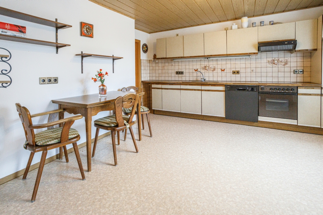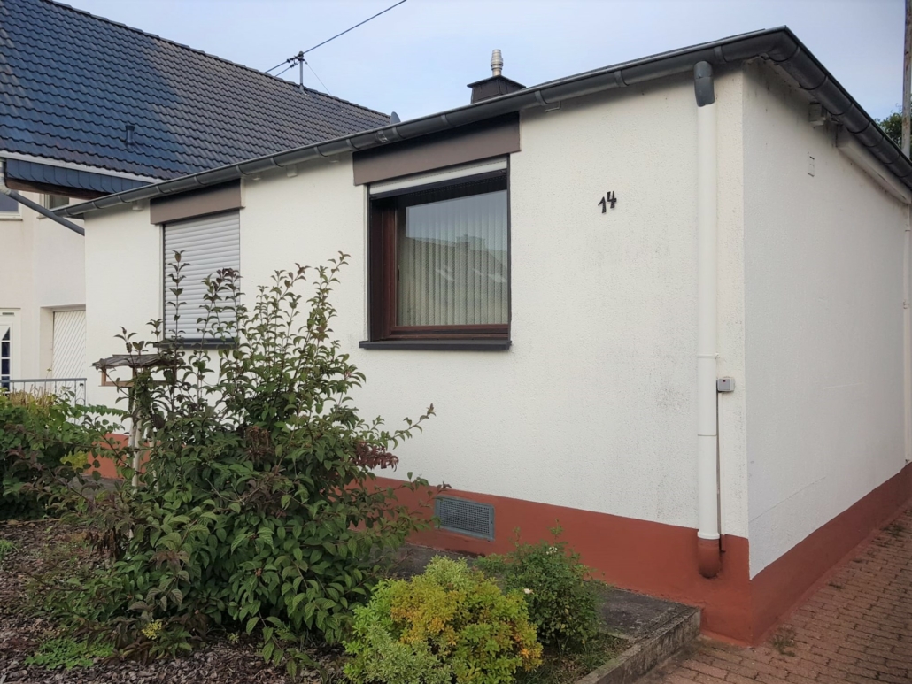 Der barrierearme Bungalow wurde im Jahr 1947 mit einer Wohnfläche von ca. 64m² erbaut und im Jahr 1992 durch einen Anbau von etwa 36 m² erweitert. Im Rahmen dieser Maßnahme wurden die Gas-, Wasser-, und Stromleitungen im gesamten Gebäude erneuert. Die Immobilie verfügt über einen geräumigen Eingangsbereich an welchen das Bad und ein großzügiges Schlafzimmer anschließen. Über eine 3 stufige Treppe gelangt man in den Altbau. Dieser besteht aus einem Wohnzimmer, einer großen Küche und einem weiteren Raum, der als Kinderzimmer, Büro oder Gästezimmer dienen könnte. Der Keller ist nur über eine Außentreppe zugänglich. Hinter der Immobilie befinden sich ein kleiner Gartenbereich sowie eine Einzelgarage. Das Grundstück ist vollständig umzäunt.