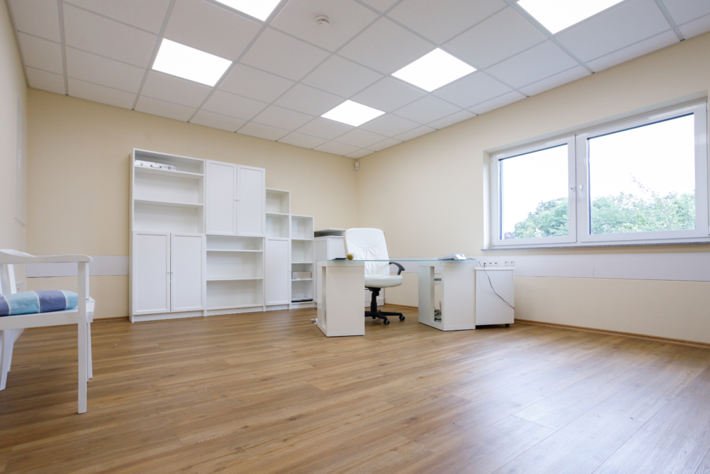 1 großer Raum (aktuell für Fitnesskurse genutzt), der in bis zu 6 Büros unterteilt werden könnte