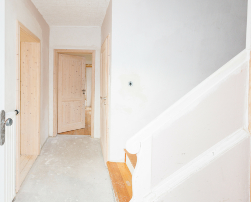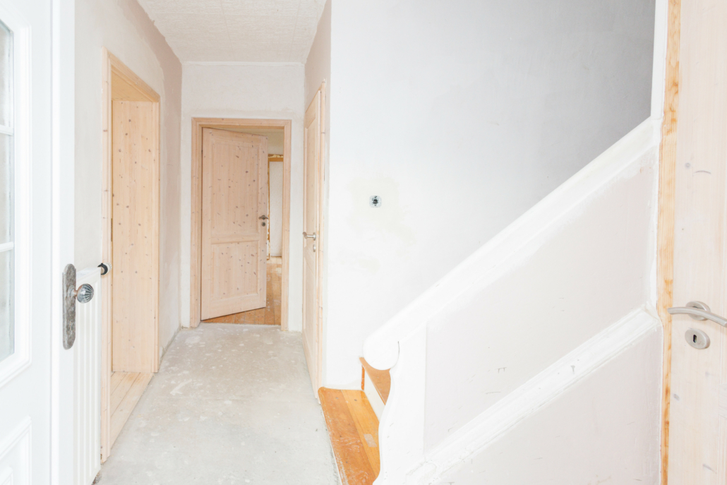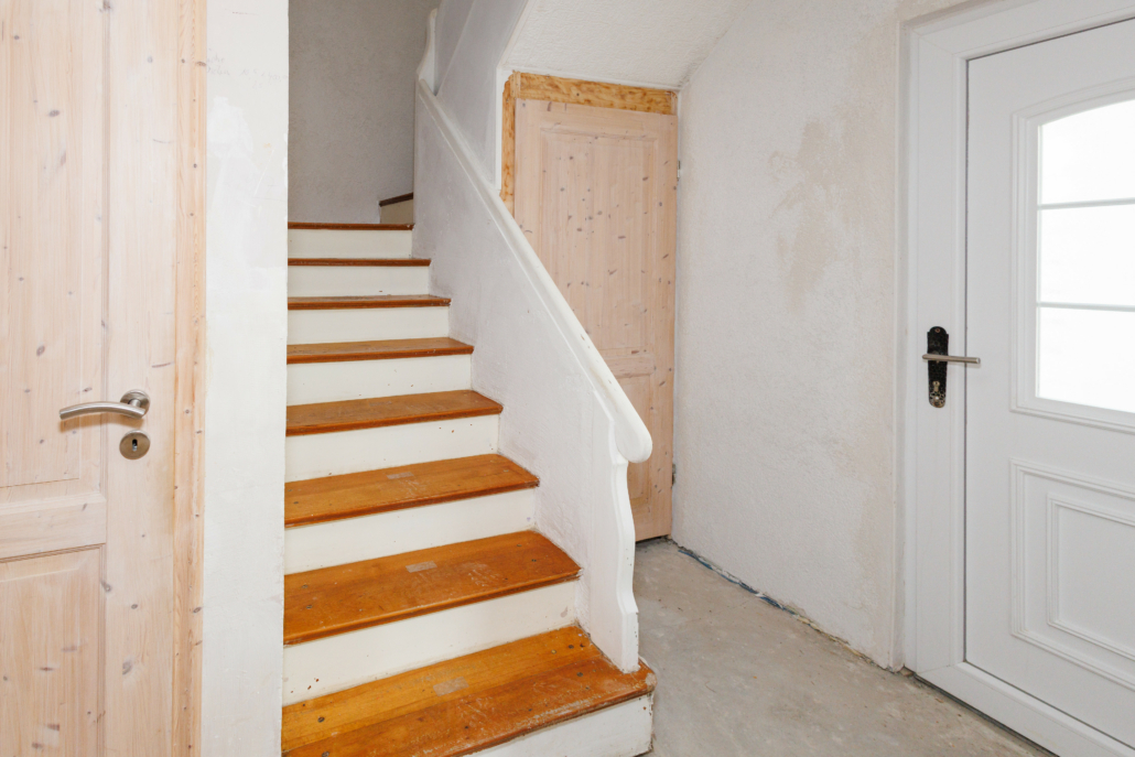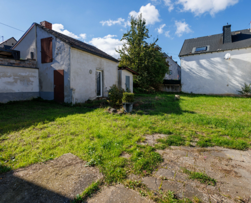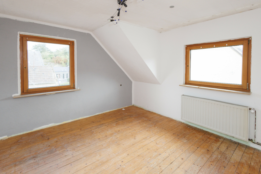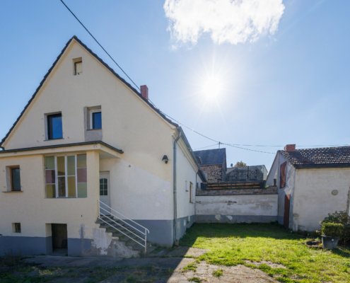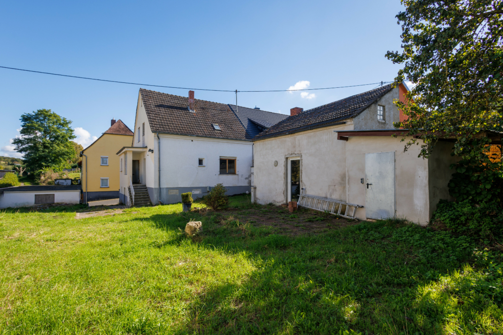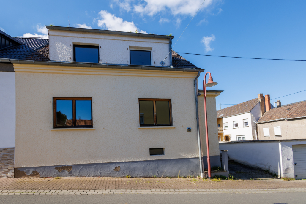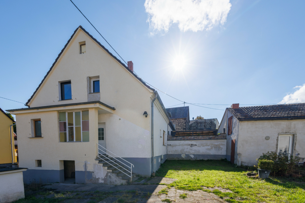 Die geräumige Doppelhaushälfte aus dem Baujahr 1955 befindet sich in Hanglage mitten im Ortskern der Gemeinde Ruitsch in unmittelbarer Nähe zum Raiffeisenplatz mit Bushaltestelle. Der Hauseingang liegt seitlich und ist durch einen kleinen Anbau mit Windfang geschützt und straßenseitig nicht einsehbar. In dem Anbau könnte ein Hauswirtschaftsraum entstehen. Die Eingangstür öffnet sich zu einem zentralen Flur, der Zugang zu allen Räumen im Erdgeschoss gewährt, sowie zum Keller und über die ansprechende originale Holztreppe ins Obergeschoss. Linkerhand gelangt man in den straßenseitig gelegenen offenen Wohn-Ess-Küchenbereich, der dank des Holzdielenbodens und der hellen Holzbalken in Kombination mit dem modernen Fliesenspiegel sehr einladend wirkt. Zentral befindet sich ein weiteres Zimmer, welches als Schlafzimmer, Büro oder Gästebereich fungieren könnte. Man könnte aber sicherlich auch über einen Durchbruch eine Vergrößerung des Wohnbereichs realisieren. Außerdem befindet sich im Erdgeschoss noch ein Gäste-WC mit modernen Bodenfliesen und Tageslicht, welches Raum für Ihre individuelle Gestaltung lässt. Hierbei wäre auch das Integrieren einer Raumspardusche denkbar. Im Obergeschoss befindet sich ebenfalls 3 Räume, die vom ansprechenden Flur zu erreichen sind. Straßenseitig liegen zwei geräumige Schlafräume, die dank der Dachgauben sehr hell und ansprechend wirken. Gartenseitig befindet sich das geräumige Bad, mit zeitlosen Bodenfliesen, Wanne und Tageslicht. Auch hier sind den eigenen Gestaltungsmöglichkeiten keine Grenzen gesetzt. Ein Spitzboden, welcher über eine Zugtreppe zu erreichen ist, bietet Stauraum. Der Keller des 1955 erbauten Hauses zeigt sich in einem altersgemäßen Zustand. Hier befindet sich die Ölheizung aus Baujahr 1999. Ergänzt wird das Immobilienangebot durch 2 Nebengebäude, die als Abstellbereich, Werkstatt, Hobby- oder Partyraum genutzt werden könnten und eine Einzelgarage direkt an der Straße. Dank der guten Größe von ca. 416 m² bietet das Grundstück trotz der Nebengebäude ausreichend Raum für die Verwirklichung Ihrer Gartenträume. Auch eine weitere Bebauung wäre denkbar.