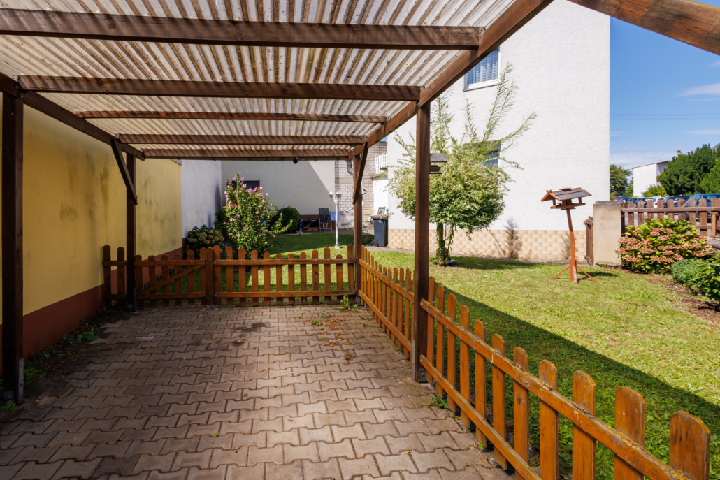 Highlight der Immobilie ist neben dem Carport und dem Stellplatz, der kleine pflegeleicht aber charmant angelegte Garten, der ausreichend Platz zum Spielen und erholen bietet.
