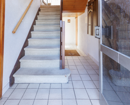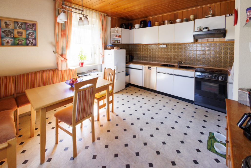Das angebotene Einfamilienhaus wurde ursprünglich im Jahr 1928 erbaut und im Jahr 1970 durch den Anbau eines Badezimmers im hinteren Bereich erweitert. Über eine vierstufige Treppe betritt man die gut gepflegte Immobilie mit insgesamt 5 Zimmern auf 3 Ebenen. Linkerhand gelangt man unmittelbar in die große Wohnküche, in welcher 2 große Fenster für viel Helligkeit sorgen. Gegenüber befindet sich das eher kleine, aber dafür umso gemütlichere Wohnzimmer. Erreicht werden beide Räume über einen kleinen, hell gefliesten Flur mit Garderobenbereich und Treppenaufgang zu den oberen Etagen. Außerdem führt der Flur in den hinteren Bereich des Hauses.
