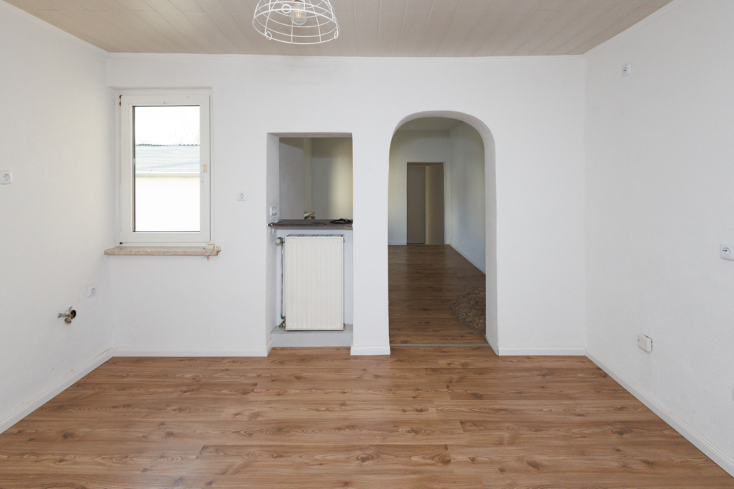 Die Wohnung befindet sich im 1. Obergeschoss einer Altbauimmobilie in einer ruhigen Lage von Plaidt. Sie ist etwa 80 m² groß und verfügt zusätzlich über eine vielseitig verwendbare Nutzfläche von etwa 25 m² im Dachgeschoss. Der Schnitt der Wohnung ist etwas ungewöhnlich, bietet aber diversen Wohnideen Platz und lässt Spielraum für Ihre Gestaltungswünsche. Die Wohnungstür öffnet sich zu einer offenen, einladenden Küche mit der Option eine Kochinsel einzurichten. Rechterhand befindet sich ein geräumiges, helles Zimmer, das sowohl als Wohnzimmer als auch als Schlafbereich genutzt werden könnte. Die Küche selbst öffnet sich links mit einer kleinen Durchreiche sowie einem Rundbogen zu einem schmalen aber gemütlichen Raum, der als Ess- oder Wohnbereich geeignet wäre. Von dort aus gelangt man über 3 Treppenstufen auf die nächste Halbebene. Hier liegt ein ansprechendes Durchgangszimmer mit Zugang zum 2. Schlafzimmer sowie zum Bad. Es könnte aufgrund seiner Lage – und da es den Warmwasserspeicher beherbergt – als Homeoffice, begehbarer Kleiderschrank, Spielzimmer o.ä. genutzt werden. Das dahinterliegende Schlafzimmer ist abseits der Straße gelegen und daher angenehm ruhig. Es verfügt über ein großes Fenster und eine gute Größe. Das helle Tageslichtbad ist mit einer Dusche ausgestattet und hell und zeitlos gestaltet. Das Besondere an dieser Wohnung ist, dass Sie über ein weiteres sehr geräumiges, helles Zimmer außerhalb der eigentlichen Wohneinheit verfügt, welches sich perfekt als Homeoffice – denn so geht man tatsächlich aus der Wohnung ins Büro – für einen Teenager, als Gästezimmer oder Hobbyraum eignet. Über einen Balkon oder Garten verfügt die Wohnung leider nicht, aber es gibt einen gemeinschaftlich genutzten Innenhof, in welchem man sich sicherlich eine nette Außensitzecke gestalten könnte.