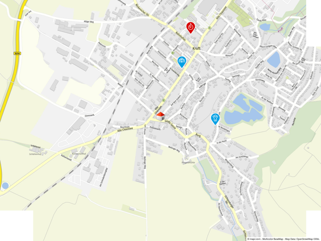 Die Immobilie befindet sich auf einem ansprechenden Grundstück in zentraler aber dennoch ruhiger Lage von Kruft. Die Ortsgemeinde Kruft ist mit knapp 5000 Einwohnern die zweitgrößte Ortschaft der Verbandsgemeinde Pellenz, deren Verwaltung im 5 km entfernten Plaidt angesiedelt ist. Verkehrstechnisch ist Kruft dank der Anbindung an die Bundesstraße 256 und die eigene Autobahnaus- bzw. auffahrt zur A61 perfekt gelegen. Die Städte Mendig und Andernach sind in 5- 10 Fahrminuten zu erreichen – Neuwied, Mayen und Koblenz liegen in 15-25 Minuten Entfernung, sind aber ebenfalls problemlos durch die öffentlichen Verkehrsmittel Bus UND Bahn angebunden. Das Ballungsgebiet Köln/Bonn lässt sich in gut 60 Fahrminuten erreichen, Rhein/Main in ca. 90 Minuten. Die Infrastruktur im Ort ist als positiv zu bezeichnen. Kruft verfügt über 1 Kindertagesstätte und eine Grundschule die fußläufig zu erreichen sind. Die weiterführenden Schultypen können per Bus & Bahn in Plaidt, Andernach, Mendig oder Mayen besucht werden. Ein Supermarkt, eine Bäckerei, sowie weitere Geschäfte des täglichen Bedarfs sind vor Ort angesiedelt. Kruft verfügt über eine Apotheke, mehrere Allgemeinmediziner sowie verschiedene physiotherapeutische Praxen. Das nächstgelegene Krankenhaus befindet sich in kurzer Distanz in Andernach.