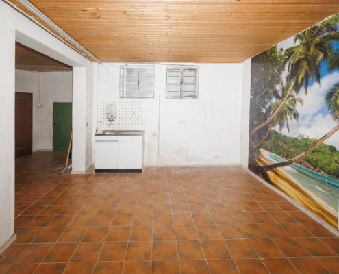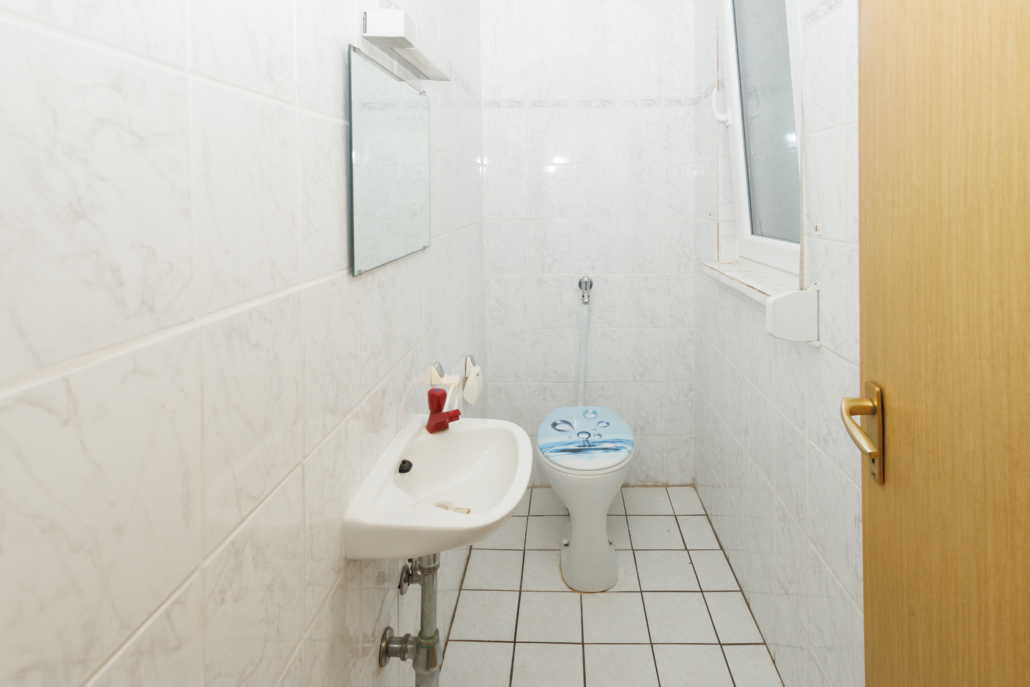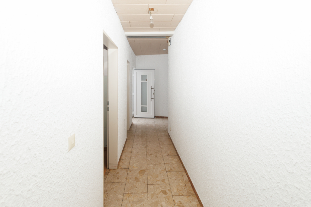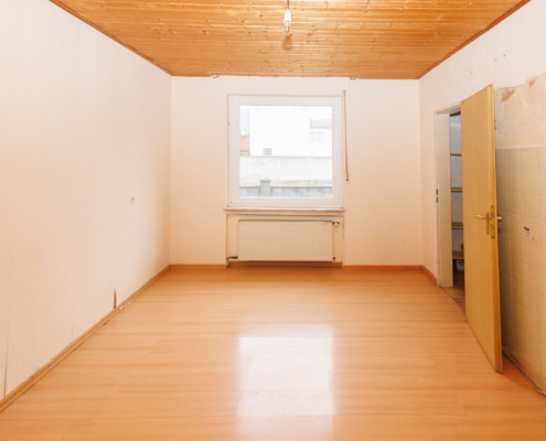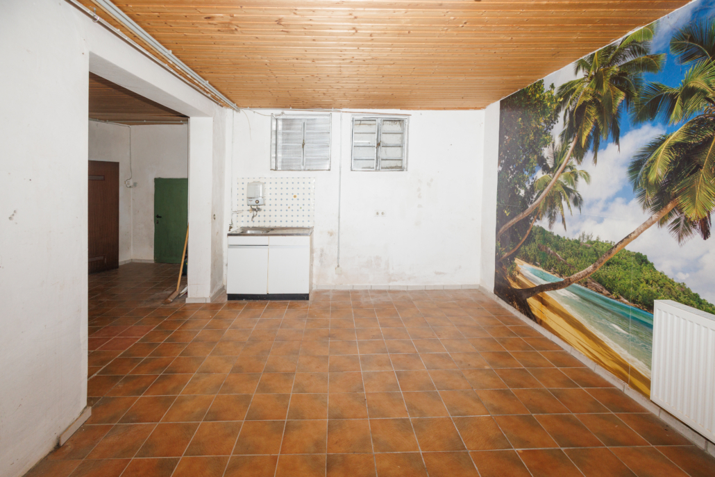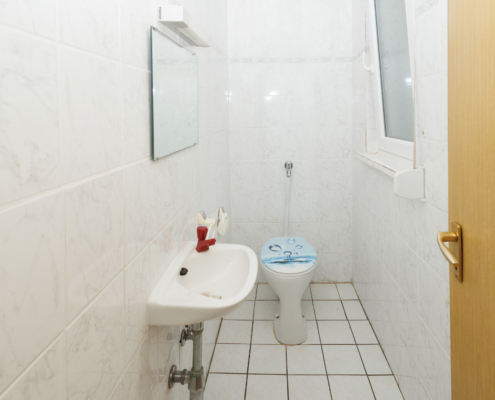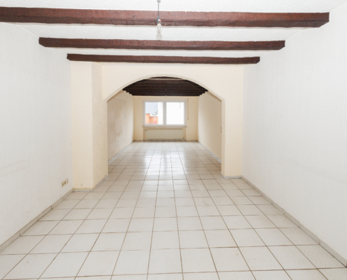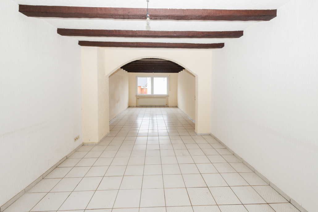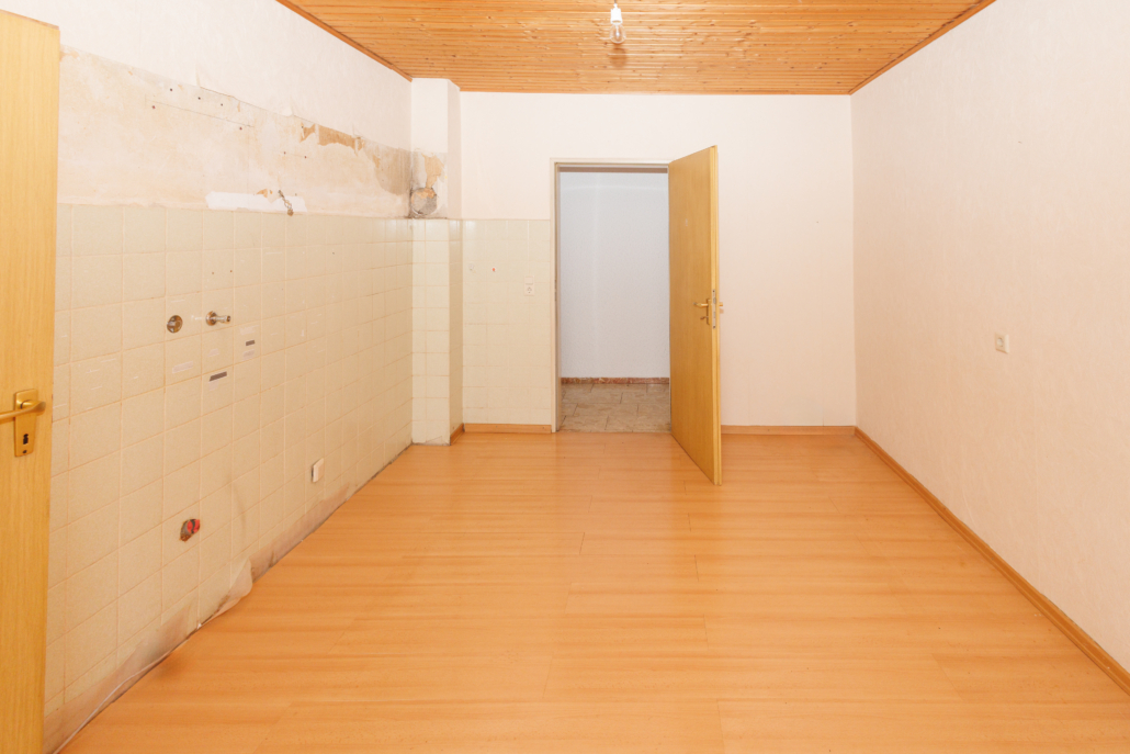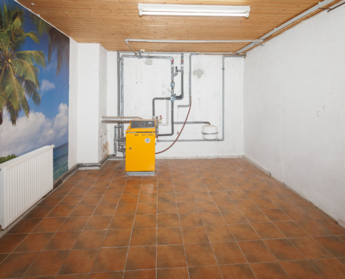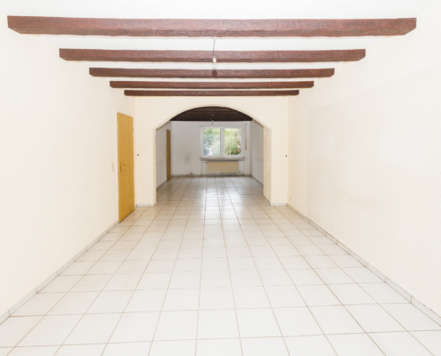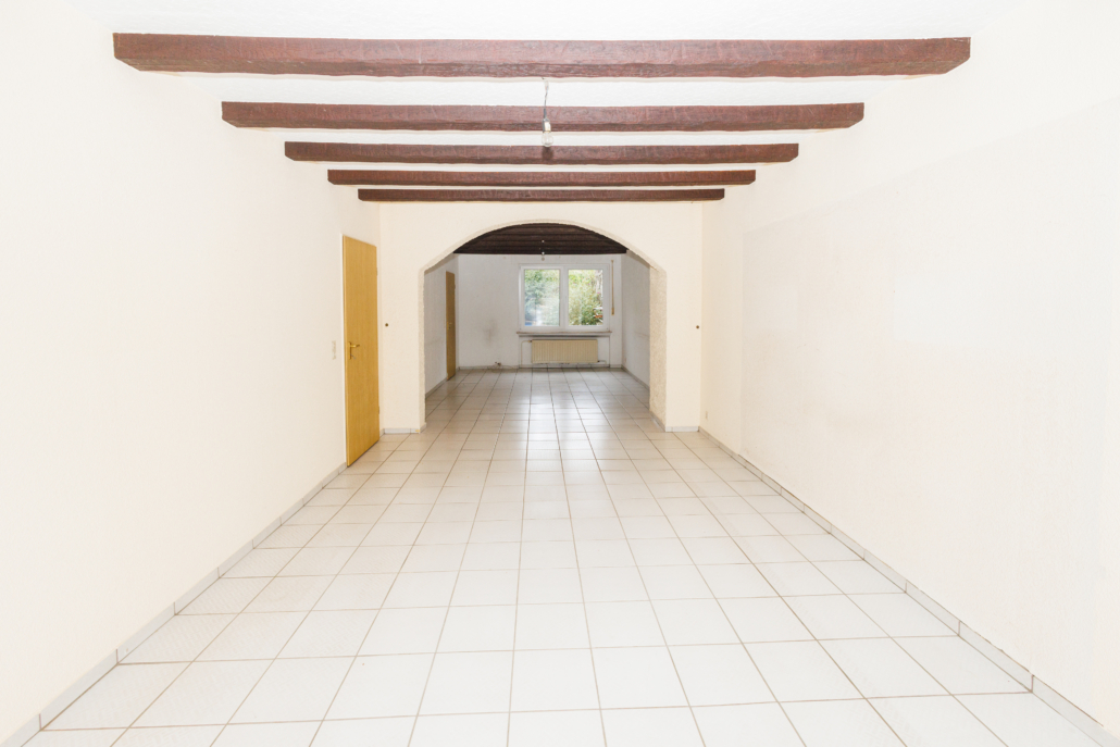 Auf der Erdgeschossebene befinden sich ein Gäste-WC, sowie die Küche mit angeschlossenem Abstellraum und ein Wohnzimmer. Im hinteren Bereich liegt der „Kellerersatz“, ein sehr geräumiger halboffener Raum, der bisher als Hauswirtschaftsraum, Vorratsraum & Partykeller genutzt wurde und Ihren Ideen freien Raum lässt.