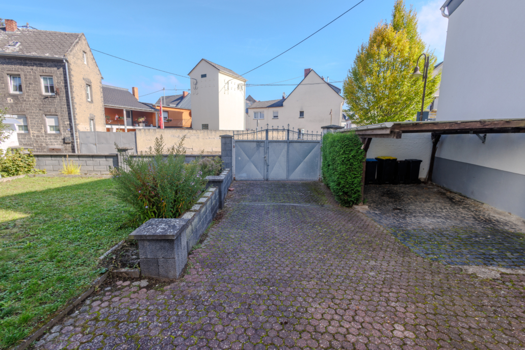 Das großzügige Haus am Ende einer Zufahrtsstraße in den Ortskern von Kruft wurde im Jahr 1974 erbaut und im Jahr 1998 um eine gesamte Wohnebene aufgestockt. Dementsprechend bietet die Immobilie ausreichend Platz für ein geräumiges Einfamilienhaus, aber auch der Ausbau zu einem Zweifamilienhaus oder ein Mehrgenerationenkonzept sind auf den ca. 212 m² Wohnfläche problemlos realisierbar. Über ein ansprechendes Metalltor gelangt man auf das 360 m² große Grundstück. Die Immobilie wurde im hinteren Bereich errichtet, so dass man über eine gepflasterte Zufahrt mit Carport, einen kleinen Innenhof sowie einen hübsch angelegten Vorgarten zur Hauseingangstür gelangt.