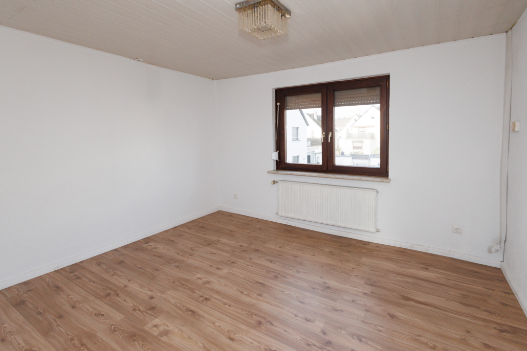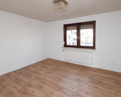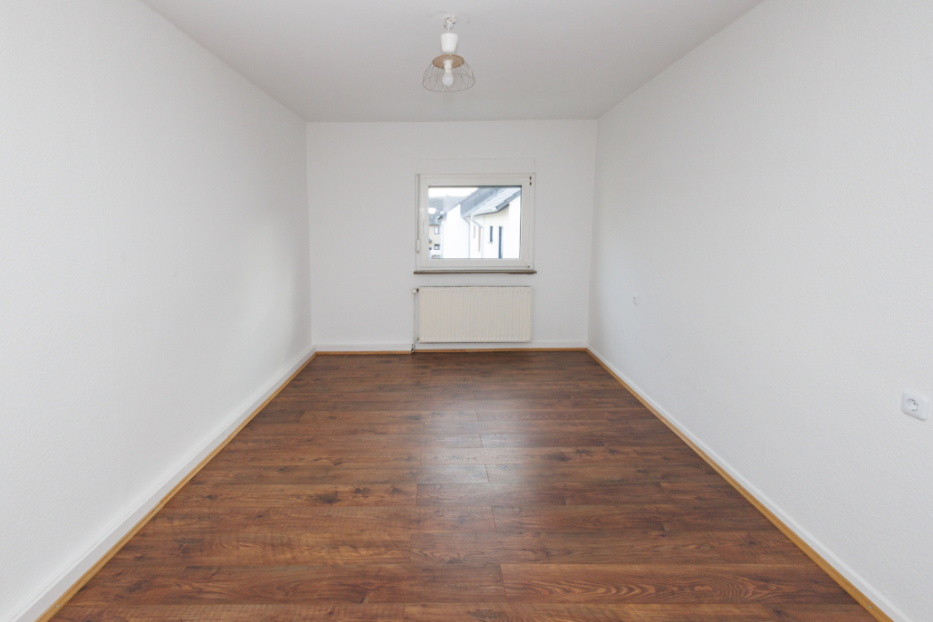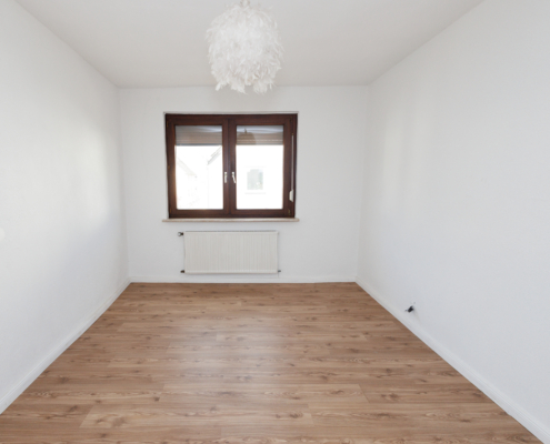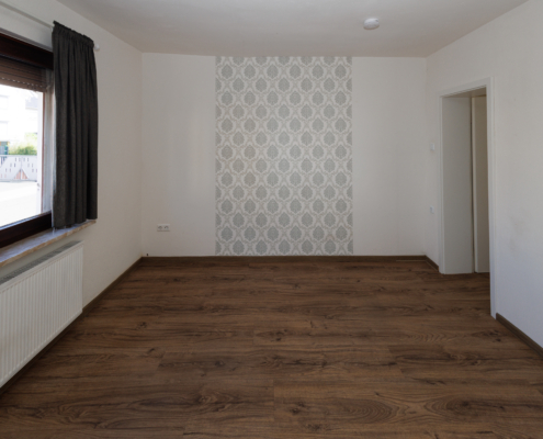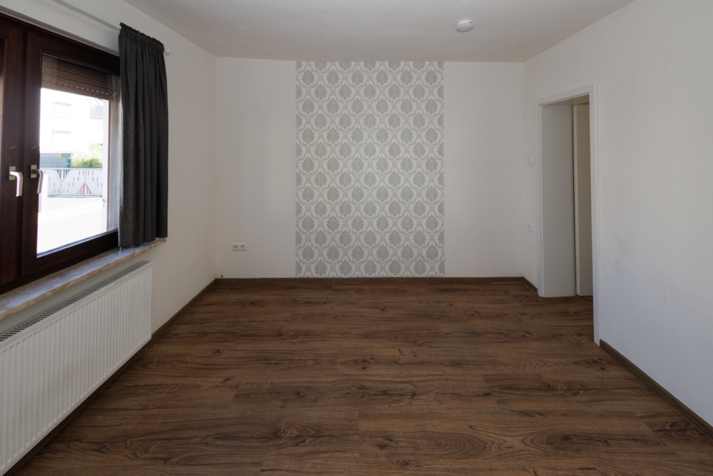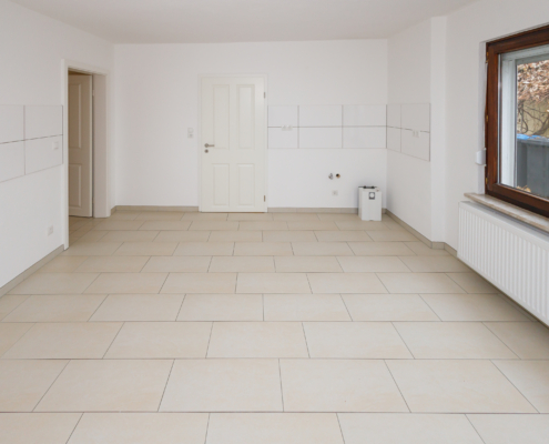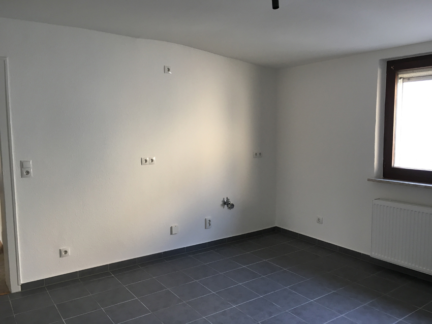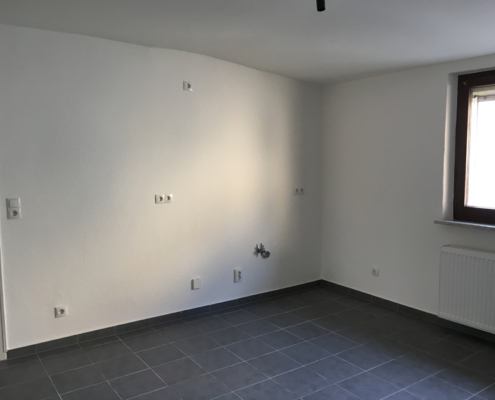 Auch die Wohnung im Obergeschoss wurde aufwendig saniert und zeigt sich modern und zeitgemäß. Aus dem Eingangsbereich gelangt man rechter Hand in das helle, zeitlose Bad mit Tageslicht, sowie ins Schlafzimmer. Geradeaus liegt die Küche mit dunklem Fliesenboden in guter Größe und daran anschließend 2 Räume, die als Wohn- und Essbereich genutzt werden können, aber natürlich auch als Homeoffice, Hobbyraum, Zockerzimmer oder ggf. Kinderzimmer.